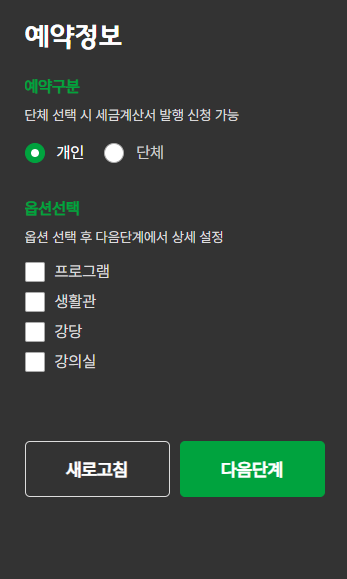 - 결제: 일부 유료 시설의 경우, 예약 후 결제가 필요합니다. 결제까지 완료해야 예약이 확정됩니다.