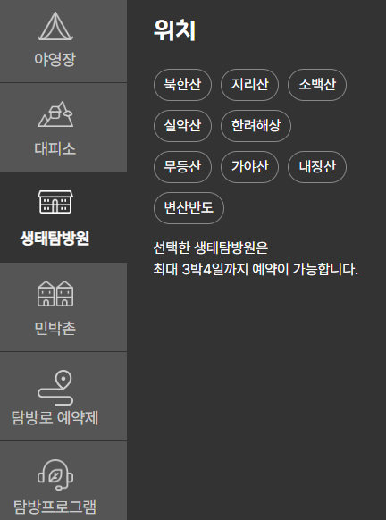 예약가능한 주요 국립공원