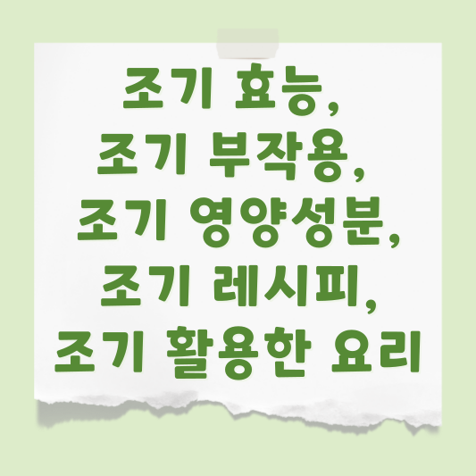 조기는 맛과 영양이 풍부한 생선으로, 다양한 효능과 건강한 영양소를 제공합니다. 이 생선을 일상 식단에 적절히 활용하면 건강을 지키는 데 많은 도움이 됩니다. 다양한 레시피를 통해 조기를 더욱 즐기세요.