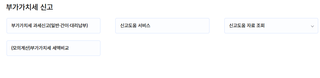- 메인 화면에서 "부가가치세 신고" 메뉴를 선택합니다.