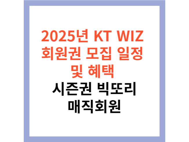 KT WIZ 팬 여러분께 반가운 소식을 전해드립니다. 2025년 KT WIZ 시즌권 모집이 공식적으로 시작되었으며, 다양한 혜택과 함께 더욱 풍성한 구성으로 돌아왔습니다. 올해 시즌권은 포스트시즌 선예매 혜택이 추가되었고, 기존 팬 페스티벌 추첨 방식이 참여 보장 방식으로 변경되어 더욱 많은 팬들이 혜택을 누릴 수 있도록 개선되었습니다. 또한, 빅또리 회원과 매직회원도 모집을 시작하며, 각각 차별화된 혜택을 제공하고 있습니다. 이번 포스팅에서는 2025년 KT WIZ 시즌권 및 회원권에 대한 모든 정보를 상세히 안내해 드리겠습니다.